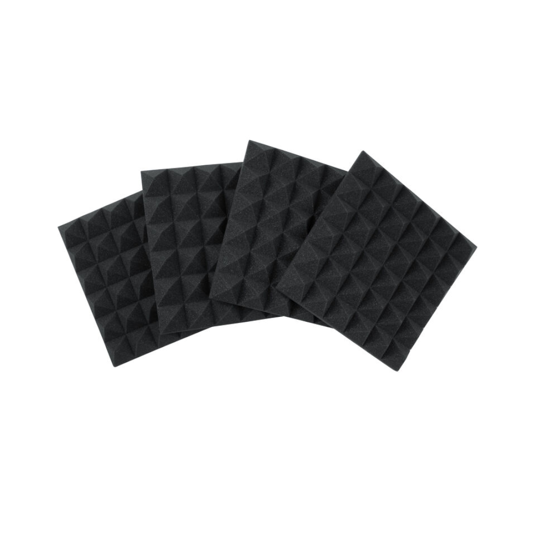 El modelo Gator Frameworks GFW-ACPNL1212PC es un conjunto de cuatro paneles piramidales de espuma acústica en color gris carbón. Estos paneles están diseñados para mejorar la acústica de una sala, absorbiendo ecos no deseados y ruido reflejado durante la grabación o la escucha.