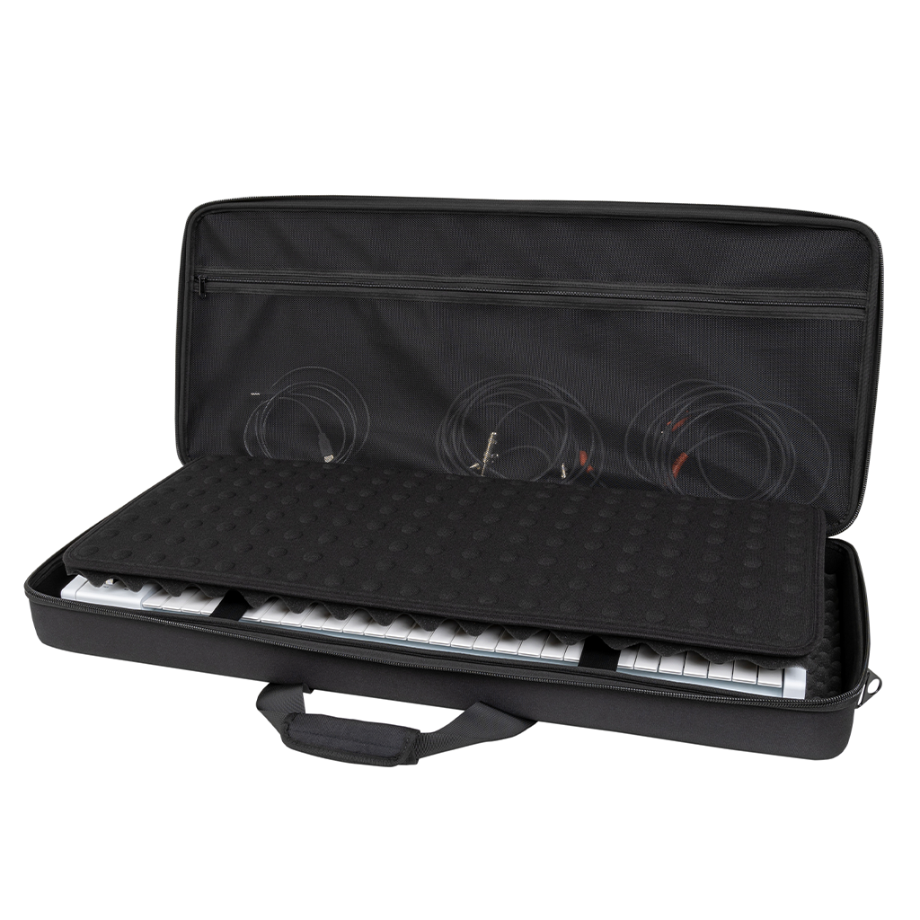 El estuche para teclados HL12500 fue diseñado para teclados de 49 notas, e incluso para algunos teclados de 61 notas. Fabricado con EVA moldeado ligero, una carcasa exterior de poliéster y espuma ajustada, ofrece el equilibrio perfecto entre protección y portabilidad para tu teclado MIDI.