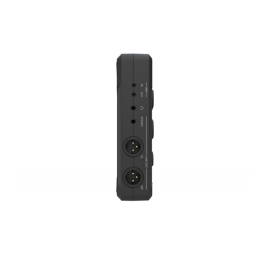 - Extras Integrados: Incluye un micrófono omnidireccional integrado para capturas rápidas, un limitador integrado en los canales 1-2 y función de loopback para transmisiones en vivo.