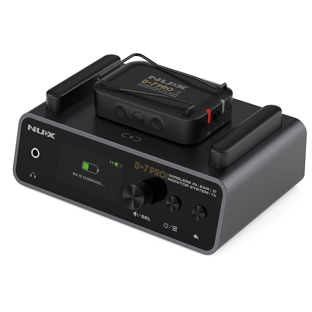 El NUX B-7 PRO es la respuesta. A diferencia de los sistemas comunes que operan en 2.4GHz (donde hay interferencia de celulares y routers), el B-7 PRO utiliza la banda de 5.8GHz, garantizando una señal limpia y estable en cualquier lugar. Su diseño es tan inteligente que el estuche de carga no solo protege los dispositivos, sino que los recarga automáticamente, ofreciéndote hasta 10 horas de autonomía total.