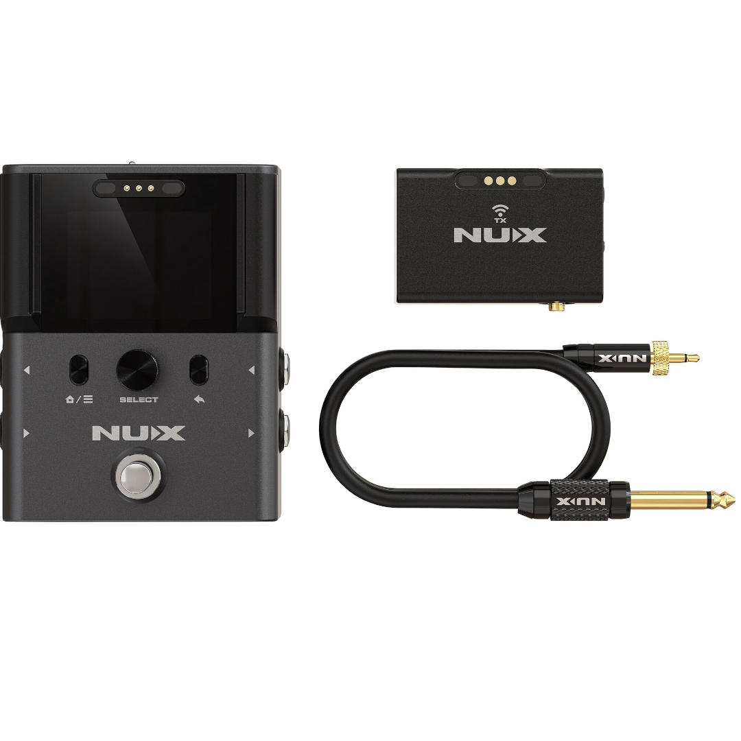 El NUX B-8 redefine tu pedalboard. Es un receptor robusto que no solo transmite tu señal con una fidelidad asombrosa, sino que también incluye un afinador de alta precisión, un booster ajustable para tus solos y un loop de efectos. Su pantalla LCD a color te permite personalizar todo, incluso cargar tus propios GIFs de bienvenida. Es estable, potente y tiene un alcance de hasta 50 metros, dándote total libertad en los escenarios más grandes.