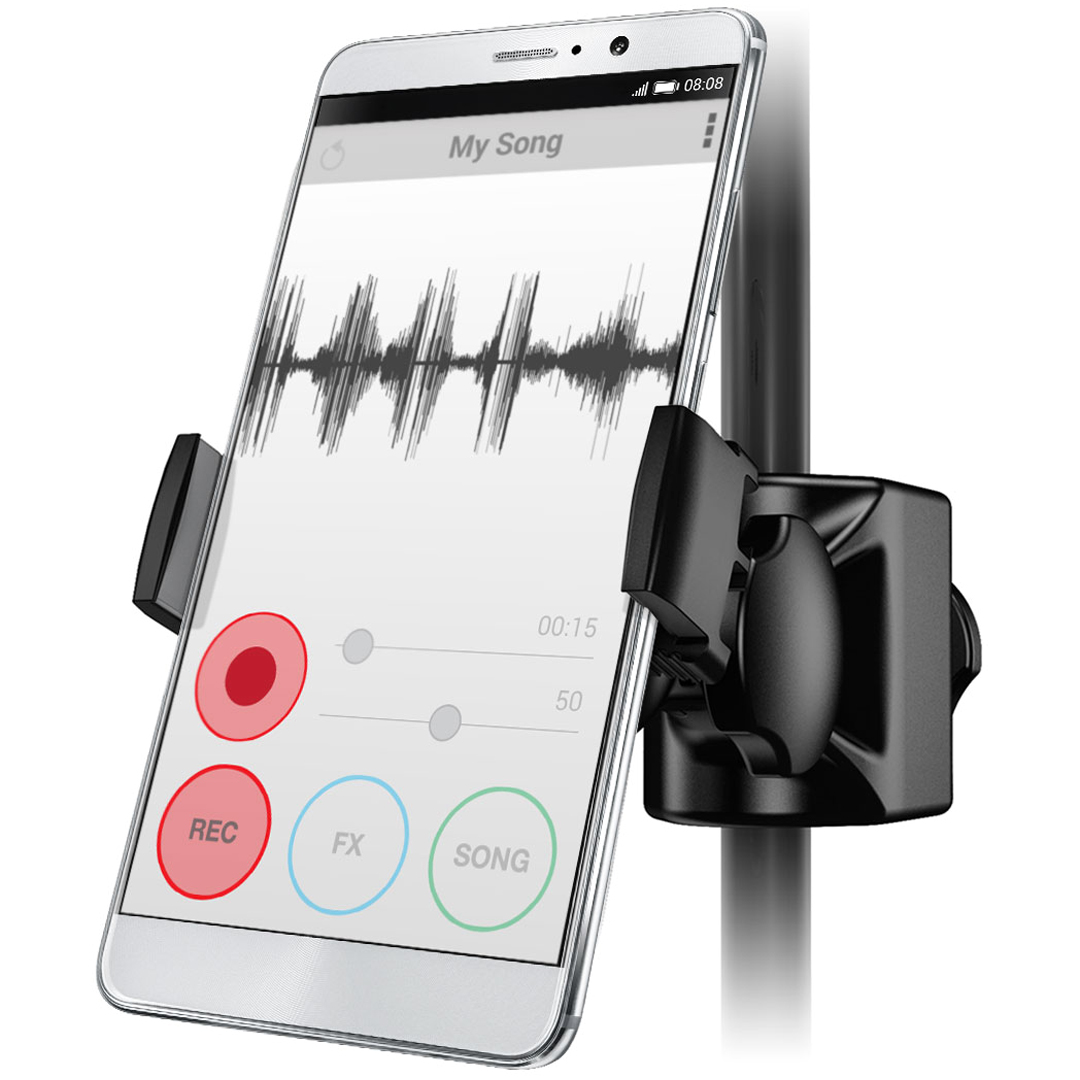 Gracias a su articulación de esfera, puedes colocar tu smartphone en cualquier ángulo y cambiar entre modo vertical u horizontal al instante. Tendrás una visión perfecta de tus partituras, listas de temas, mezcladores o apps de efectos, mientras todos los puertos y botones de tu dispositivo permanecen 100% accesibles. Este soporte de micrófono para smartphone, diseñado en Italia, es la herramienta que no sabías que necesitabas